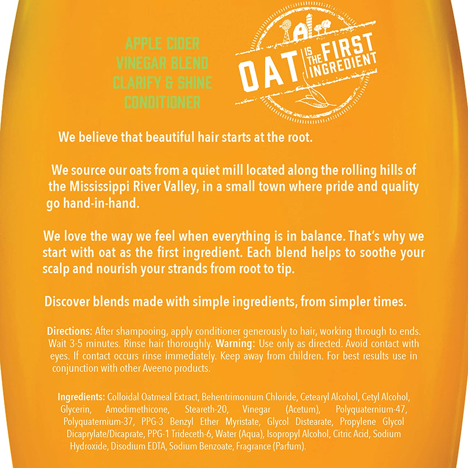 - Shine & Volume: Oatmeal is the first ingredient in this farm-inspired calming conditioner with apple cider vinegar to brighten and add shine to enhance your hair's natural beauty