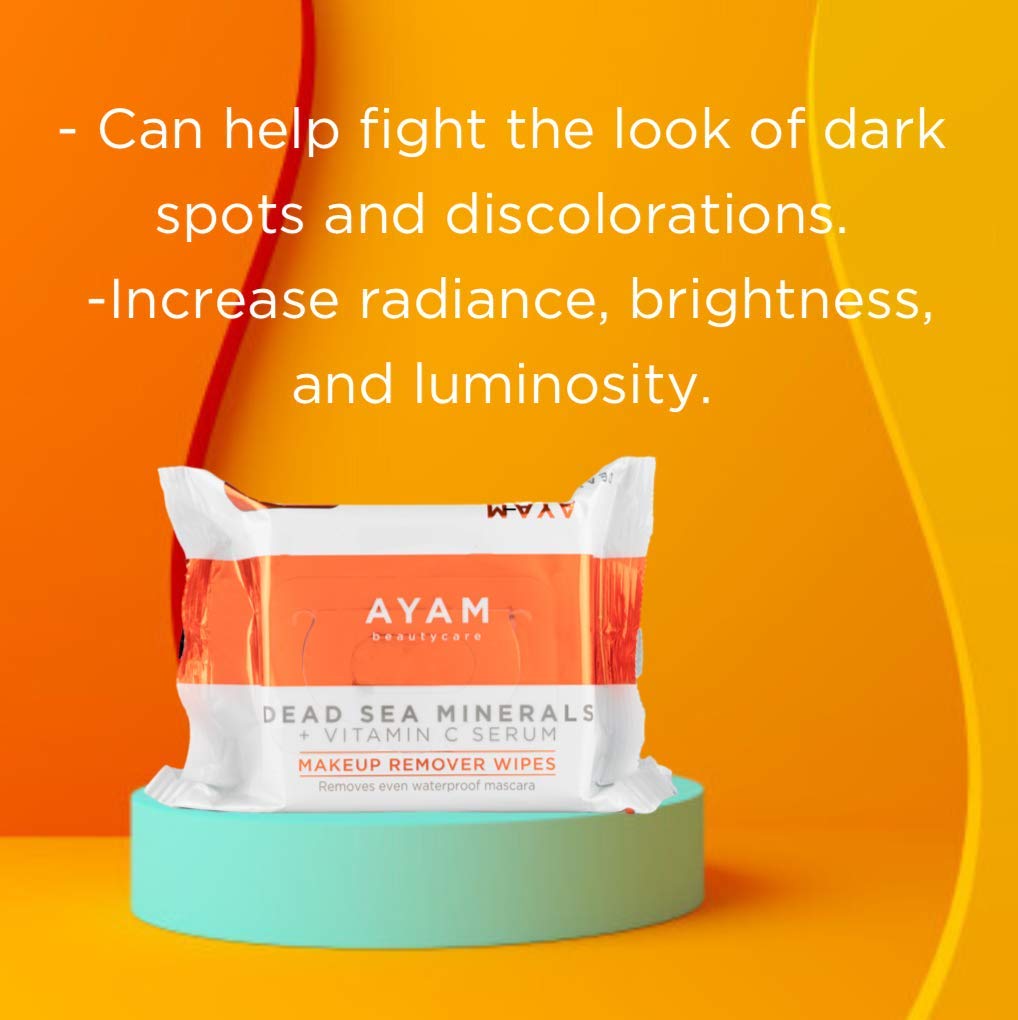 AYAM Beautycare Dead Sea Minerals + Vitamin C Serum Makeup Remover Wipes, Cleansing Towelettes, Removes makeup, Oil, Dirt, 25 Count
