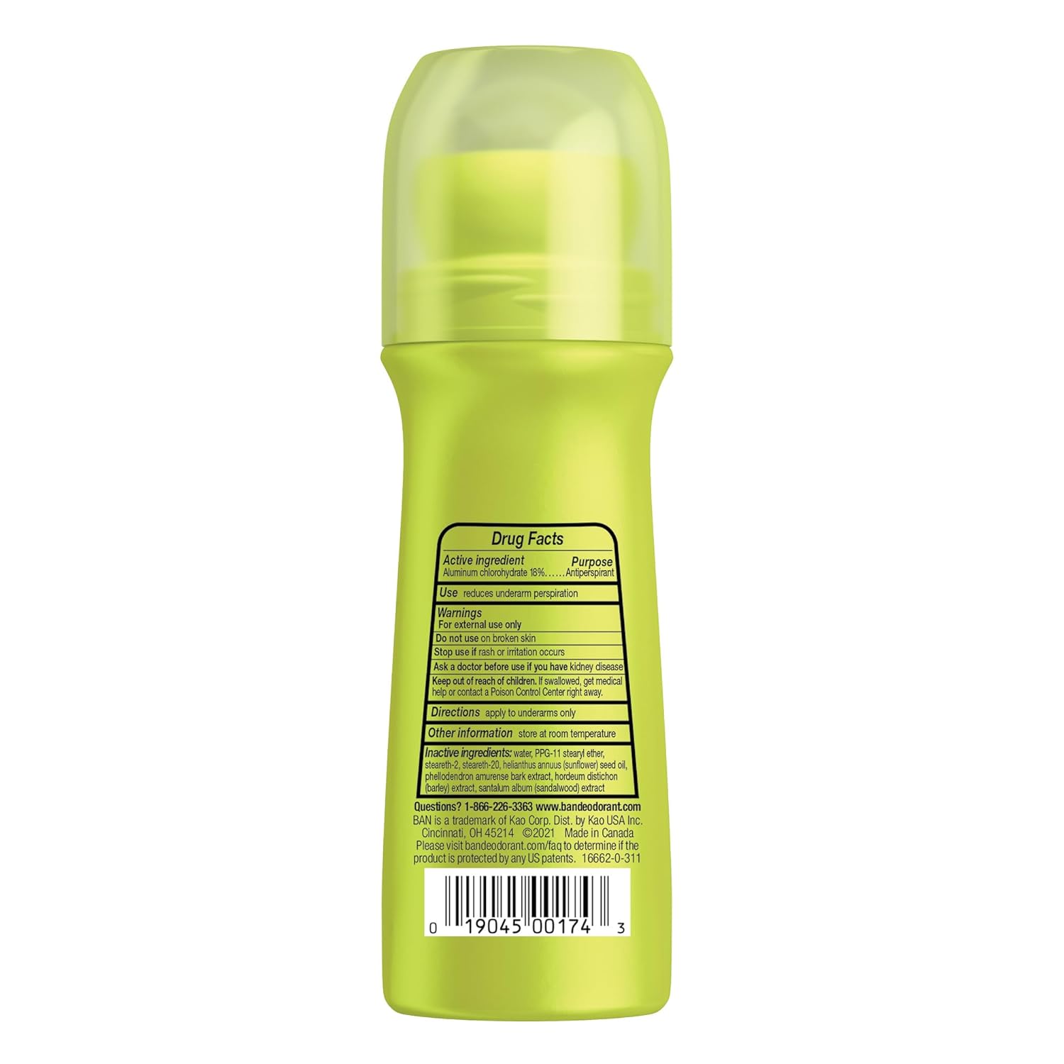 Start your day by gliding on Ban Roll-On Antiperspirants and be confident that you'll stay protected from underarm odor and wetness for 24 hours. With odor-fighting ingredients and Kihada extract, the formula reduces odor caused by bacteria breaking down sweat on your skin’s surface, plus helps to significantly reduce perspiration, so you'll feel fresher and dryer for longer. It also rolls on clear and stays clear, so it won't leave behind annoying white marks on clothes. Satisfaction Guaranteed. Limitations may apply.