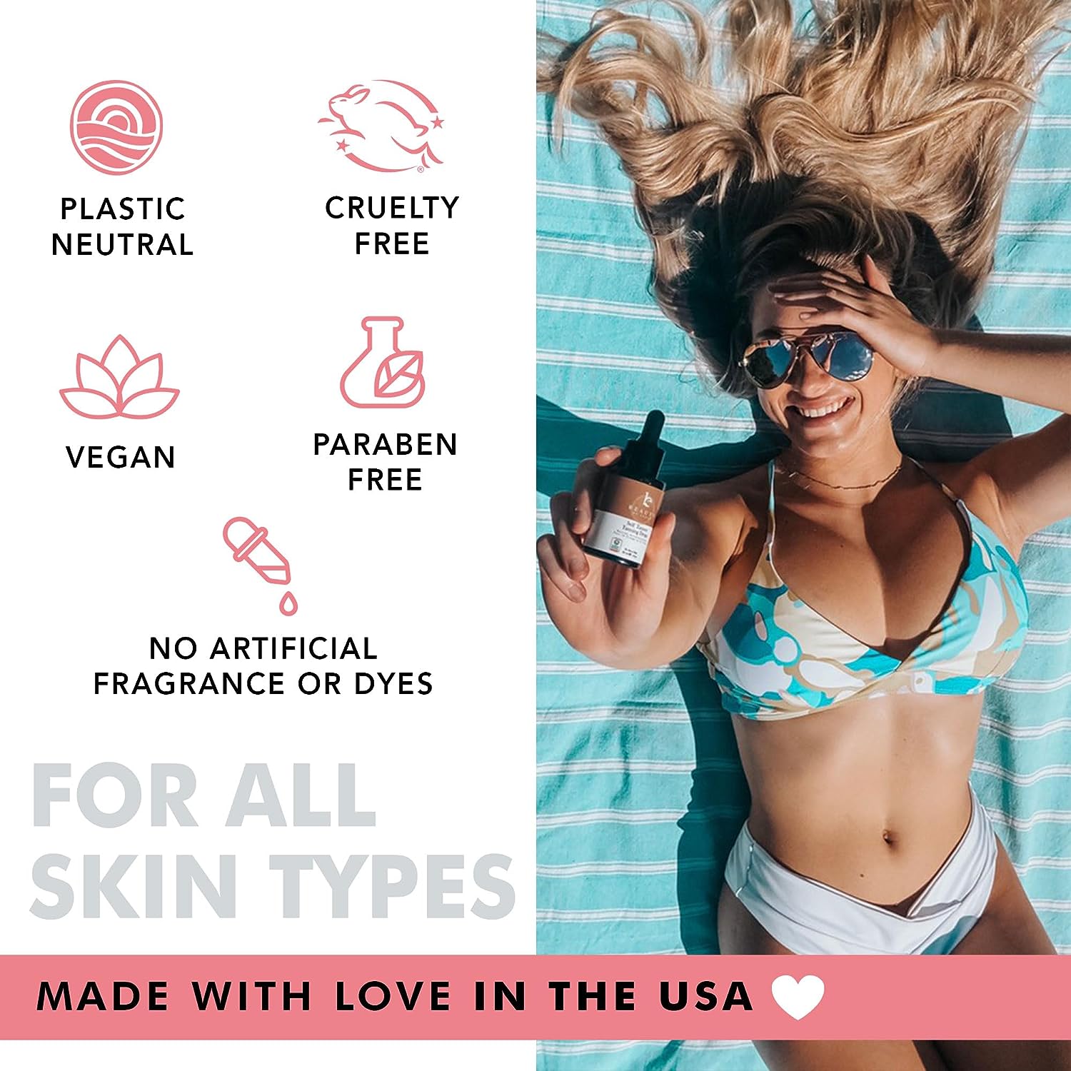 - CLEAN INGREDIENTS & NO HORRIBLE SMELL: There is a reason why we have the highest rated self tanner. Our sunless tanner drops are formulated with natural & organic, skin loving vegan ingredients like aloe vera and coconut water. Have a gorgeous looking natural self tan without the stench or orange hue, making this the best self tanner for face and body.