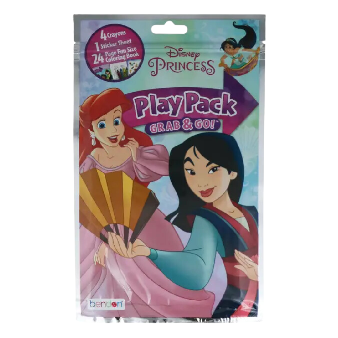 The Bendon Princess Grab & Go Play Packs are delightful party favors that include a mini coloring book, crayons, and stickers featuring beloved Princess characters. These packs are perfect for children's parties, classroom activities, or as travel entertainment.