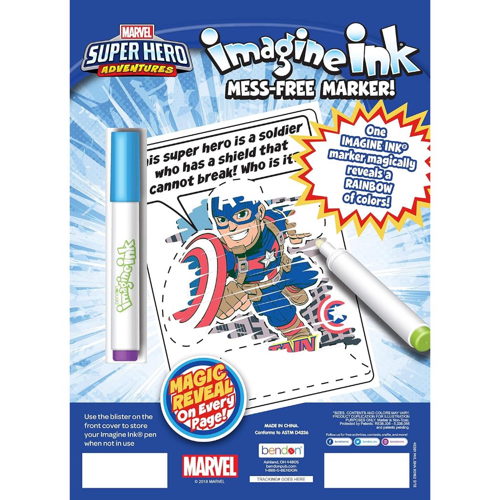 Bendon Super Hero Adventures Imagine Ink Mess-Free Marker Magic Ink Pictures - 1 Marker & 16 Pages