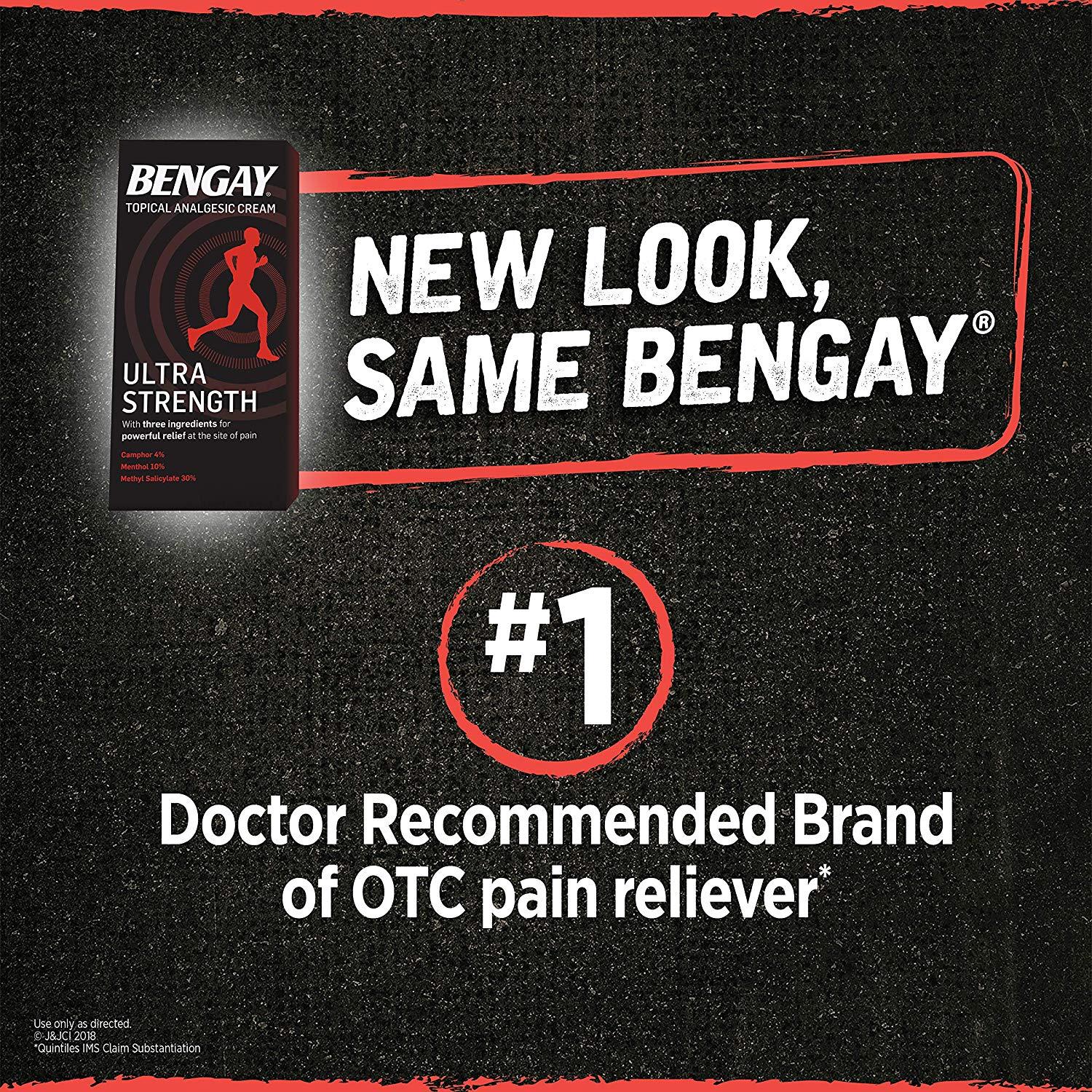 Containing three pain-relieving ingredients - more than any other BENGAY product - this cream provides relief from minor arthritis, backache, muscle, and joint pain. Massage onto skin for deep, penetrating relief. For strong relief from aches and pains, use Ultra Strength Bengay Topical Cream. With three pain-relieving ingredients, more than any other Bengay product, this non-greasy topical cream provides relief from minor arthritis, backache, muscle, and joint pain. Cream is formulated with camphor, menthol, and methyl salicylate. Massage the topical pain relieving analgesic into skin for deep, penetrating relief. This non-greasy cream comes in a tube for convenient application.