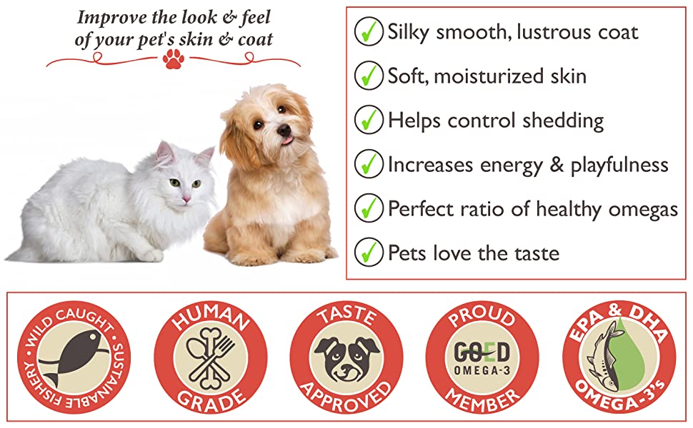 The ultimate coat-care supplement, your pet will never want to live without again. Dry skin can cause dandruff and discomfort to your fur baby. Irritated flaky skin is a sign your pet is lacking nutrients. A sign your pet needs a salmon fish oil supplement. The skin problem relief works from the inside out. As the oil works its way through the body it provides anti-inflammatory effects. Reducing inflammation soothes the skin. Leaving your fur babies skin soft, and coat glistening.