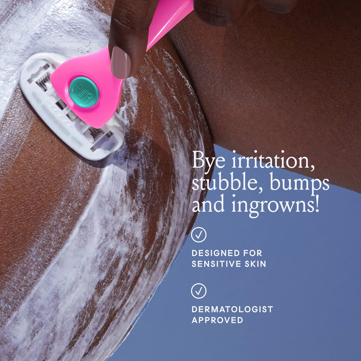 Loving your Billie razor? YAY! Now it’s time to grab some fresh blades to stay smooth anytime, anywhere. The Billie Razor Refill Blades are designed specifically for the way women shave–no more men’s razors! They are made with 5 ultra-sharp blades to help you get a close shave, and they’re encased in 360º of aloe shave soap to help your razor effortlessly float over your skin like a cloud. Designed with optimal spacing between each blade to allow shave cream, soap and hair to pass on by—whether you’re shaving your legs, pits, toes or stomach—no one likes a clogged razor! These nickel-free blades give you an ultra-gentle, ultra-close and comfy shave. They’re dermatologist-approved for all skin types, including sensitive skin. Say bye to stubble, irritation, bumps and ingrowns! Get one pack to shave with for the next few weeks, or stock up with a few packs to keep the smooth going for months to come! Everyone shaves differently, but we recommend replacing your blades about every 7 shaves. Each pack comes with 4 refills. Looking for shave cream? We’ve got that too. Check out the award-winning Whipped Shave Cream to help your razor (with super-fresh new blades!) give you a smoooooth shave.