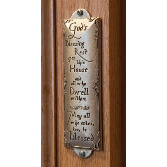 Bless This House Brass Mezuzah with Hebrew Parchment in Gift Box & Placement Guide