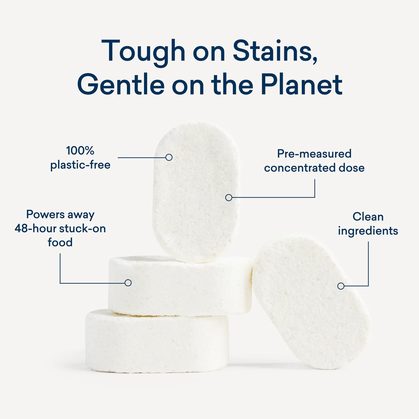 Powerful clean, zero plastic. Our eco-friendly dishwasher tablets tackle 48-hour baked-on stains without harsh chemicals or plastic film (like PVA). Just drop one into your dishwasher dispenser—no unwrapping needed. Made with plant and mineral-based ingredients, free from dyes, fragrances, and phosphates. Certified EPA Safer Choice, Cruelty-Free, Vegan, Climate Neutral, and USDA BioPreferred. Refill your Forever Tin and clean with confidence—effective, sustainable, and easy.