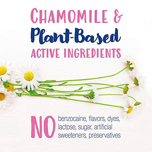 Camilia's natural active ingredients include Chamomilla 9C HPUS (Relieves teething pain accompanied by irritability), Phytolacca decondra 5C HPUS (Relieves painful gums) and Rheum 5C HPUS (Relieves minor digestive disorders associated with teething).