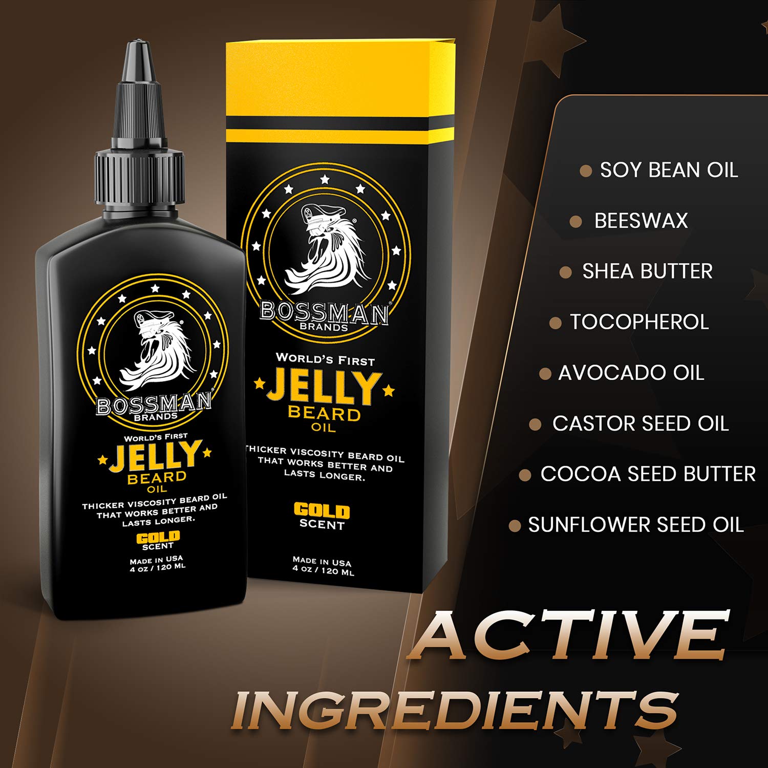 Bossman Jelly Beard Oil Facial Hair Moisturizer & Beard Growth Softener Gold Scent, 4 oz. / 120 ml