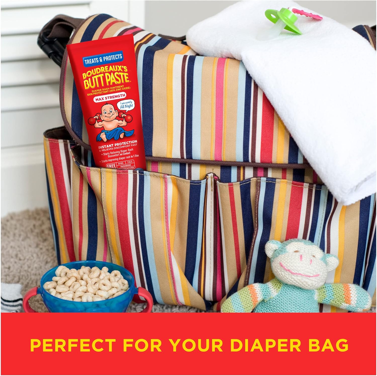 Developed by a pharmacist and father of four, Boudreaux's Butt Paste Brand has been trusted for over 40 years by pediatricians and parents to help protect irritated skin due to diaper rash and to instantly seal out wetness. When used daily, it is also a great way to help prevent diaper rash. Boudreaux's Butt Paste Maximum is a thick, cream-like protective diaper rash ointment with 40% Oxide. It provides overnight protection, starts to soothe on contact, seals out moisture and helps keep baby’s boo-tay dry. Boudreaux's Butt Paste Maximum Strength is free from dyes, preservatives, parabens and talc. Don't forget to keep your baby’s butt protected and your hands mess free with our diaper rash cream and ointment brush applicator. Boudreaux’s Butt Paste has diaper ointments for any baby’s boo-tay needs including maximum strength, sensitive, natural* aloe, and butt barrier.