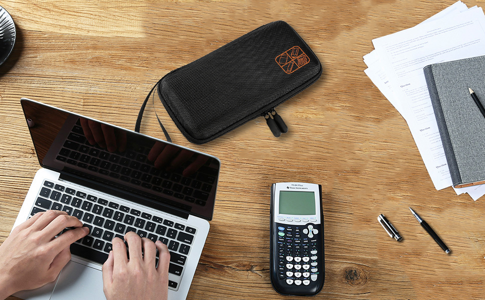 BOVKE Hard Graphing Calculator Carrying Case with Extra Zipped Pocket for USB Cables, Manual, Pencil & More (Black)