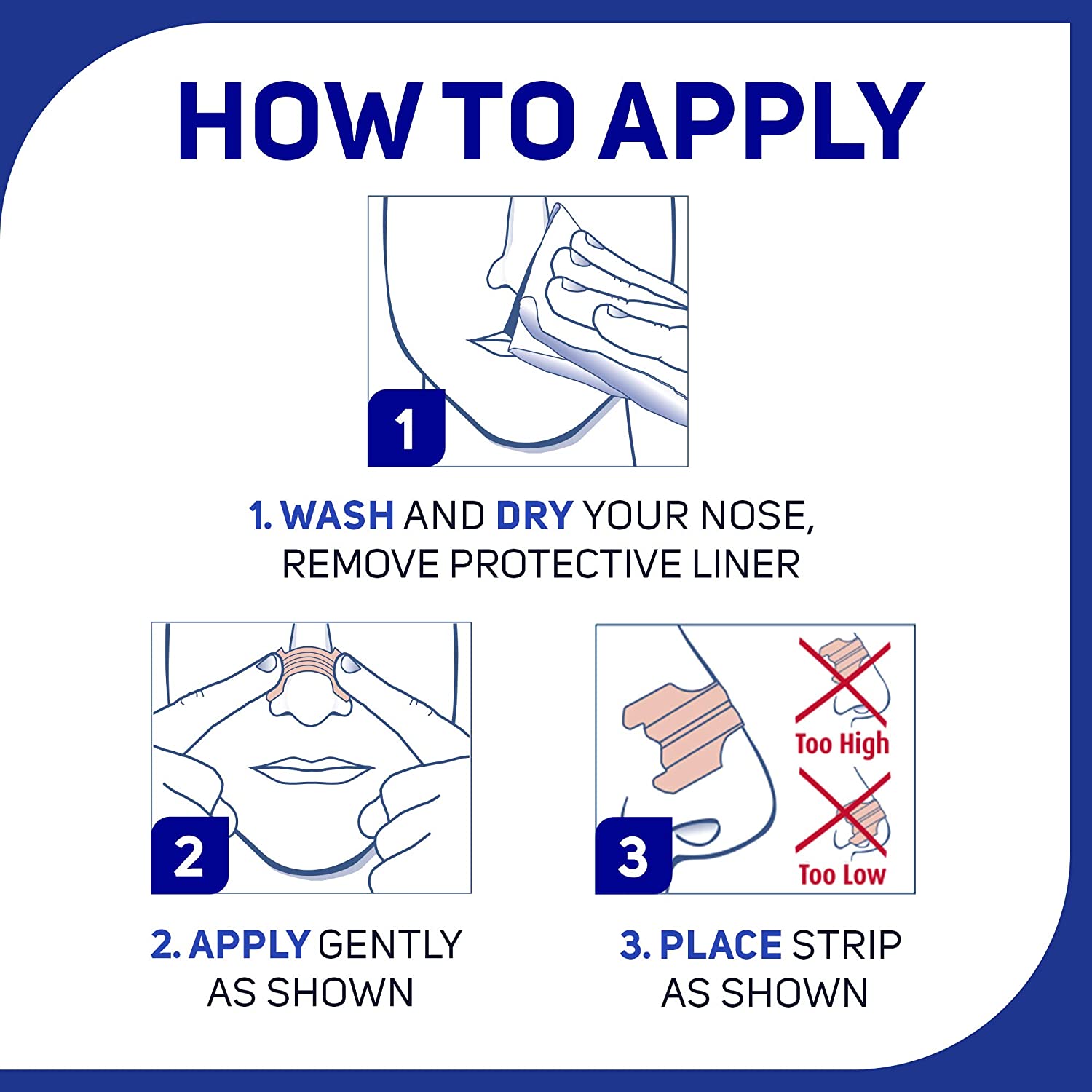 They seem simple, but Breathe Right nasal strips have unique engineering that make them a sleeping aid as well as an effective tool for managing nighttime congestion and improving sleep. The nasal strips are made of flexible, spring-like bands that fit right above the flare of the nostrils. The underside is 3M adhesive so that once positioned on the nose, they stay there. As the bands attempt to straighten back to their original shape, they lift the sides of the nose and open the nasal passages. This lifting action helps open inflamed sinus passages and makes it easier to breathe. The nasal strips provide instant relief for congestion due to colds, allergies, or a deviated septum and reduce snoring caused by nighttime nasal congestion. How to use Breathe Right Nose Strips? Clean Your Face: Since adhesive doesn’t stick well to oily, wet or moisturized skin, it’s important to wash and thoroughly dry your nose before applying a nasal strip. Position Nasal Strip: Remove the protective liner to expose the adhesive, then position the nasal strip on your nose. Position is critical - the strip should be centered along the width of your nose with the tabs on the flaring part of the nostril. The tabs shouldn’t cover the flaring part of the nostril entirely, but rather should sit just above. Apply to Nose: Gently rub the strip to secure it onto your nose. Nasal strips come in different sizes to fit different nose types, so you should determine which size is best for you. Also, it’s important to always refer to the packaging leaflet before use.