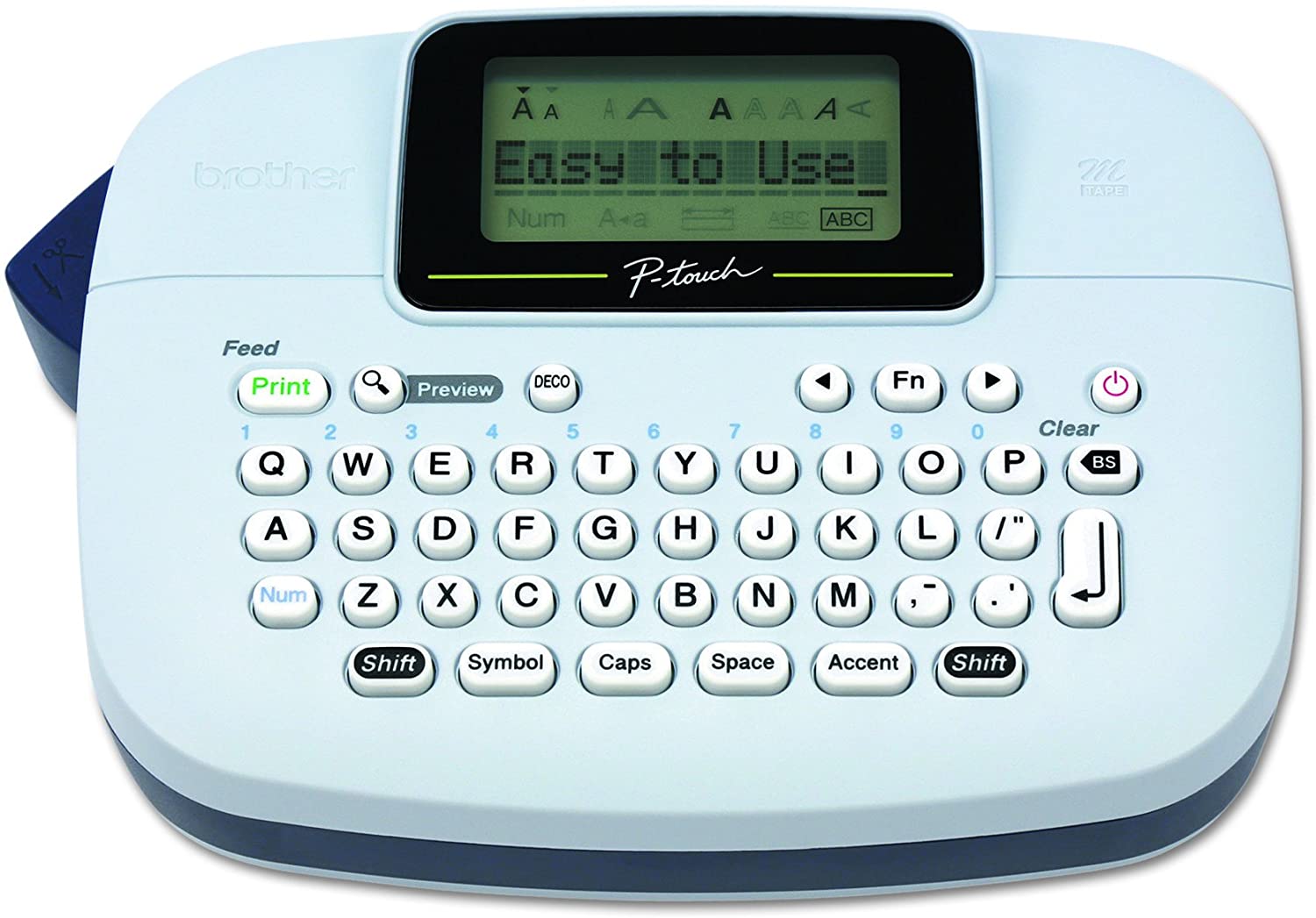 This handy P-touch labeler is lightweight, portable and easy to use. It features a Qwerty Keyboard and easy-view display. Comes with a variety of type styles, frames and symbols to easily personalize your labels. Great for home and home office use. The Brother P touch PTM95 Handy Label Maker is simple and effective and prints high quality labels with ease. Designed for those home offices or small businesses that need simple, two line text labels, the Handy Label Maker is easy to use and requires no complex training. This handy P touch labeler is portable, lightweight, and features a QWERTY keyboard and easy view display. These features allow users to easily type text and review it for errors before printing the label. This saves time, reduce mistakes, and helps save money on misprints. The Brother Handy Label Maker comes with a variety of frames, font styles, and fun decoration patterns to create labels that really stand out. In fact, users can create stylish labels for personal or business items using one of the 8 Deco Mode patterns. Simply select the layout and label length and type the text to create your customized labels. Having the flexibility to select and change different tape colors enhances the label making process. This label maker is great for those looking to create labels for school items, gift bags, storage bins, file folders, and more. This label maker is powered by 4 AAA batteries (sold separately) that are easy to install. The P touch Handy Label Maker uses non laminated Genuine Brother “M” series tapes that are available in 9mm and 12mm widths and multiple color options. It features an auto power off function in case you forget to turn it off after use
