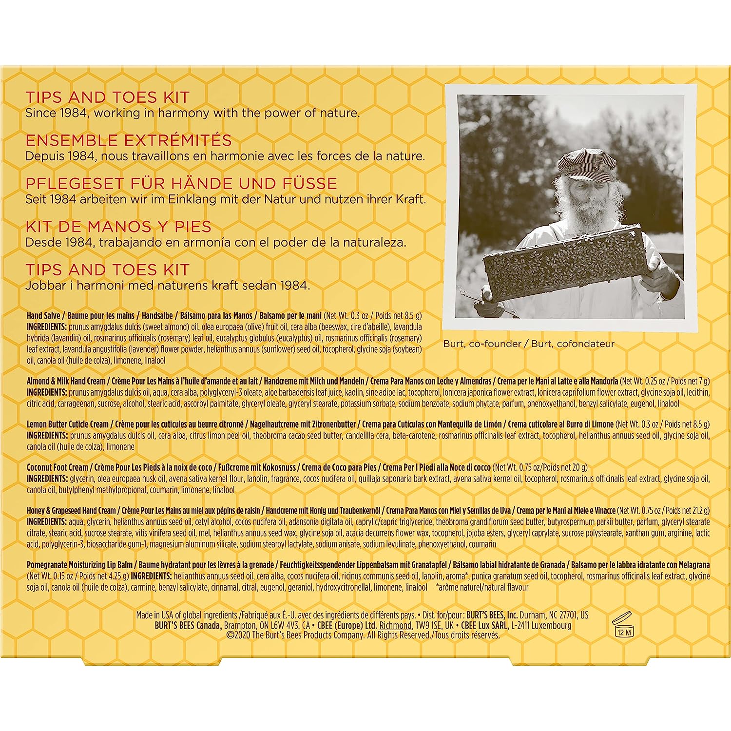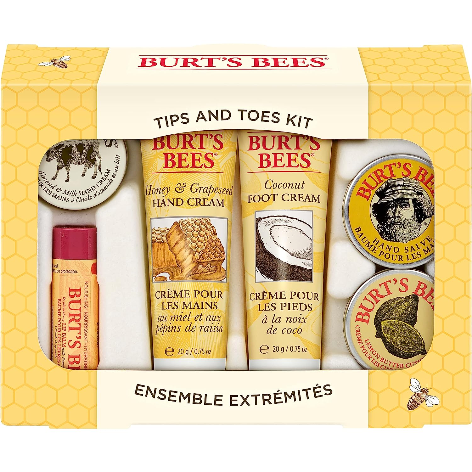 Pamper hands and feet with Burts Bees tips and toes gift Set which includes 5 trial Size hand and foot favorites, plus a Pomegranate lip balm. Almond and milk hand cream, Honey and grape Seed hand cream, and hand Salve moisturize dry hands, while lemon Butter Cuticle Cream softens cuticles and nourishes nails. Feet also get Spoiled with rejuvenating coconut foot cream, and you can Kiss dry lips goodbye, and add a hint of color, with revitalizing pomegranate lip balm. This Burts Bees tips and toes kit provides serious softening and hydrating for dry skin, and makes the perfect birthday or holiday present. Plus, the sweet packaging is designed to be gift ready so you can skip the wrapping. Give the gift of nourishment with Burts Bees gift Sets.