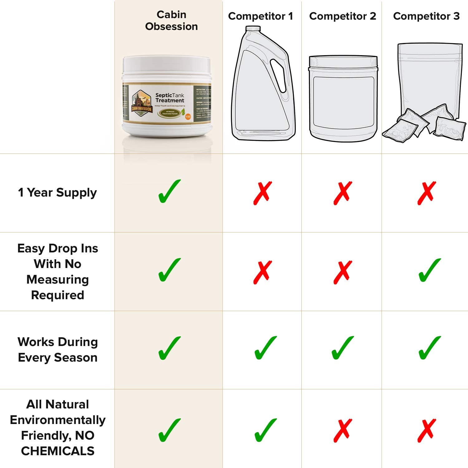 A once a month treatment that’s tough on sludge, keeps odors in check, and helps prevent costly repairs. Just drop it in one toilet anywhere in the house, and get lasting protection. Cabin Obsession septic tank treatments work great for your home, camper, or even organic garden composting.