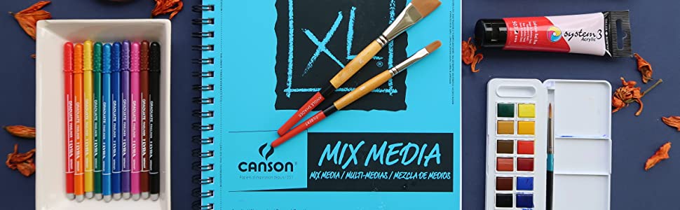 Canson XL Mix Mediais the popular choice when experimenting with a variety of mediums. Great for acrylic, watercolor, charcoal, pastel, marker, pen or pencil, this pad features heavyweight paper with heavy sizing for both wet and dry media. The fine texture surface erases well and blends easily, and the wire-bound pad allows easy access to micro-perforated true size sheets.