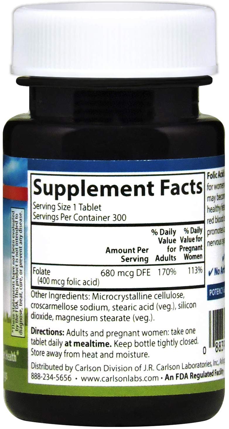 Carlson Folic Acid 400 mcg 300 Tablets Prenatal Support