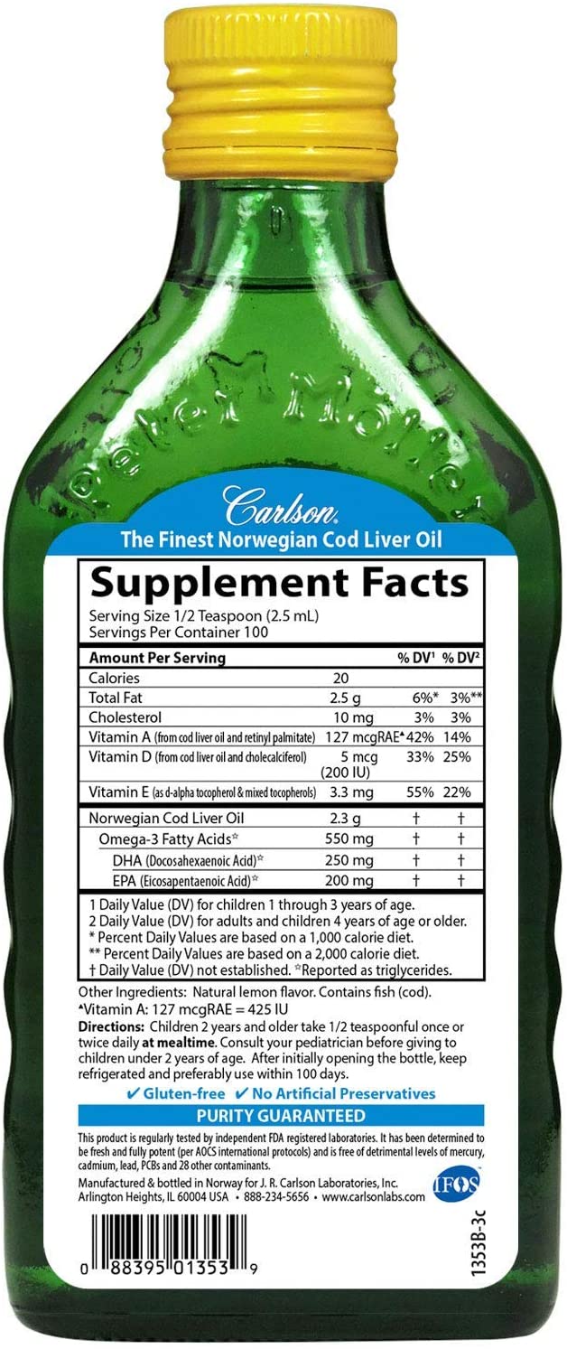 Carlson for Kids Norwegian Cod Liver Oil also features vitamins D and A‚ which can support immunity‚ vision‚ cellular health‚ and much more.