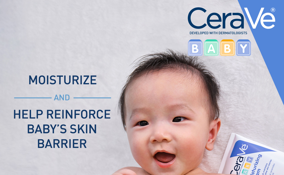 Developed with pediatric dermatologists, CeraVe Baby Moisturizing Cream is a rich and non-greasy cream that moisturizes, helps protect, and maintains baby's delicate skin with 3 essential ceramides (1,3 and 6-II) and ingredients like fatty acids & cholesterol pediatric dermatologists recommend. This gentle hydrating moisturizing cream is designed to deliver up to 24 hours of moisture. This baby cream is suitable for baby's developing skin. Key Ingredients: Ceramides: Essential for healthy skin, ceramides help restore and maintain the skin’s natural barrier, Hyaluronic Acid: This ingredient attracts hydration to the skin’s surface and helps the skin retain moisture.