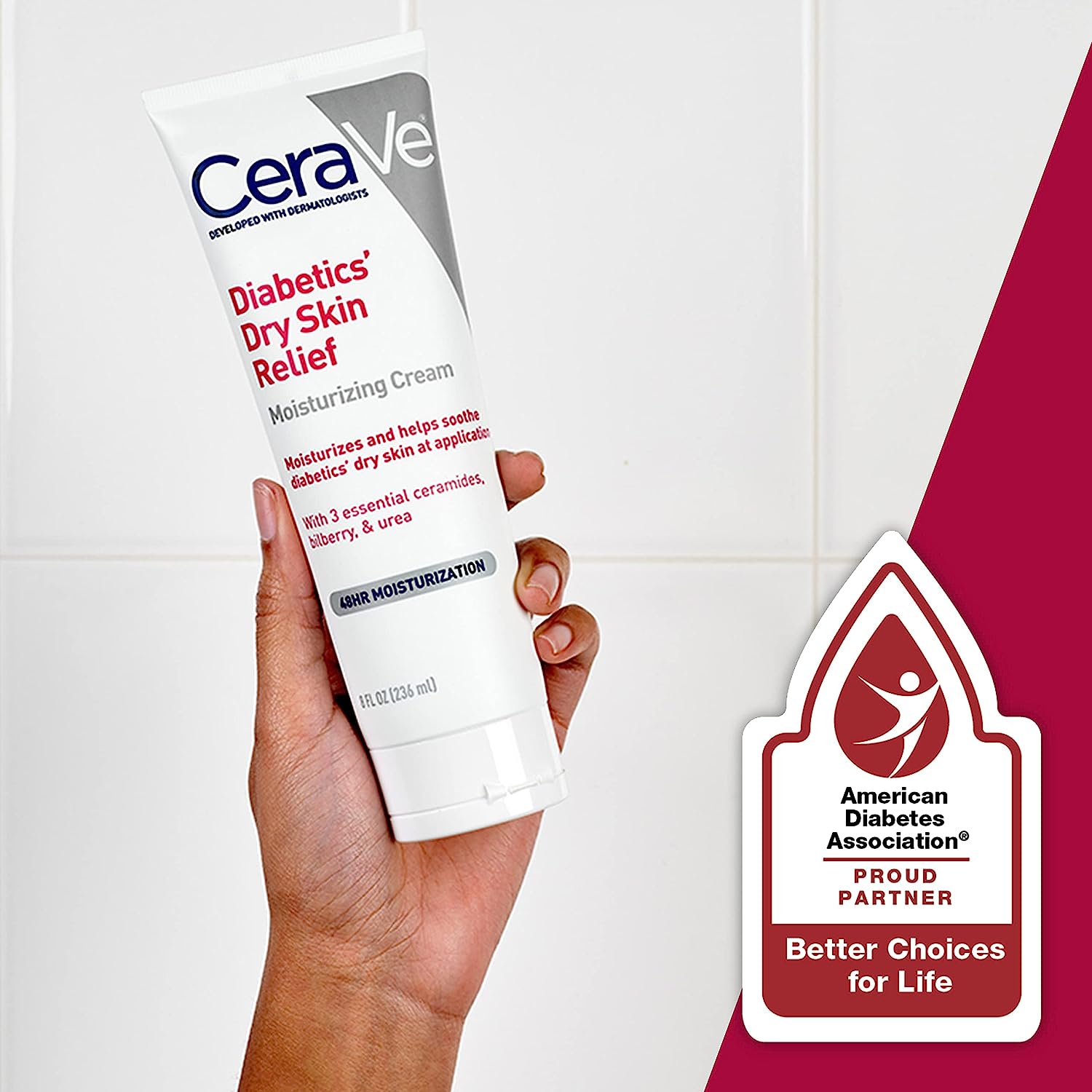 Developed with dermatologists, CeraVe Diabetics' Dry Skin Relief Moisturizing Cream moisturizes and helps soothe ' dry skin at application. This formula, with Bilberry and Urea, helps attract and retain moisture for all day hydration. Also formulated with three essential ceramides to help restore and maintain your skin's natural protective barrier. This moisturizing cream for skin provides soothing 48-hour hydration for dry skin.