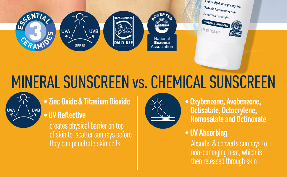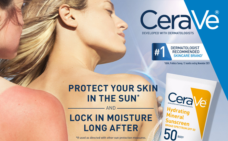 Developed with dermatologists, CeraVe Hydrating Sunscreen Body Lotion provides broad-spectrum protection with 100% mineral sunscreen that reflect the sun’s damaging UVA/UVB rays. This lightweight formula provides all day hydration with three essential ceramides that help restore the skin’s natural barrier and lock in moisture long after. Key Ingredients: 100% Mineral Sunscreen: Zinc oxide & Titanium dioxide sunscreen filters that reflects the sun’s rays. Does not contain oxybenzone or avobenzone., Ceramides: Essential for healthy skin, ceramides help restore and maintain the skin’s natural barrier, Hyaluronic Acid: This ingredient attracts hydration to the skin’s surface and helps the skin retain moisture. Application Tips 1.Dispense a small amount to one palm and rub your hands together. 2.Apply to one area of the body at a time and thoroughly massage into the skin. 3.The formula should spread without leaving a greasy residue or feel.