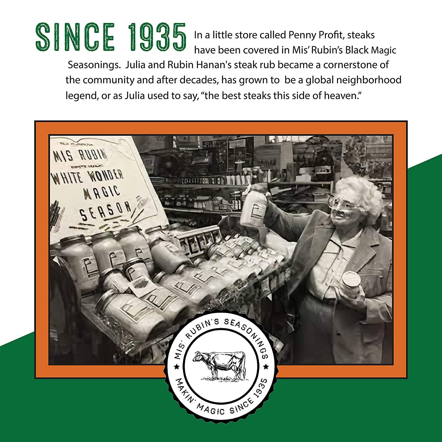 AWARD WINNING BBQ SEASONING: Mis Rubin’s Black Magic steak seasoning has been a household staple in the south for over 80 years. Our irresistible dry rub spice blend has won numerous BBQ awards including the official “Taste of the South Award.”