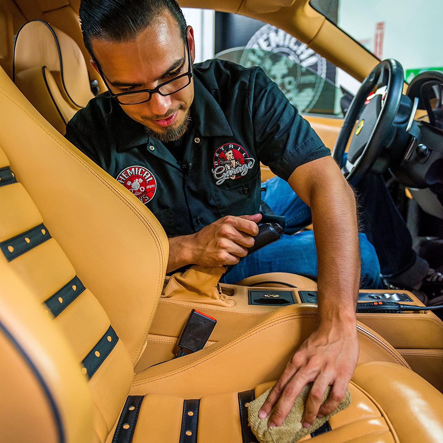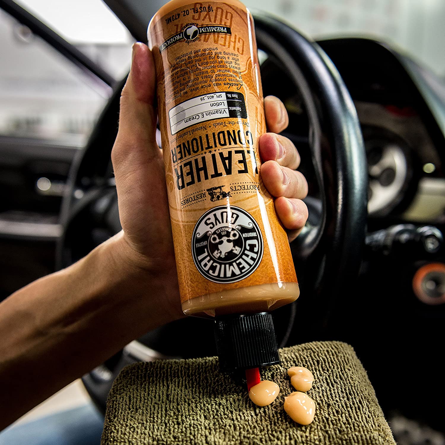 Chemical Guys Leather Conditioner is designed to nourish and restore your leather surfaces. The all new Leather Conditioner is formulated with vitamin E to breathe new life into your leather seats, dashboards, and door panels. They designed Leather Conditioner to restore the appearance of your leather surfaces while maintaining a dry-to-the-touch feel. Leather Conditioner is formulated with UV protection to resist cracking, fading, and discoloration caused by harmful solar rays. Chemical Guys Leather Conditioner works excellent on all leather, leatherette, and faux leather surfaces. The conditioning formula penetrates deep into leather for the softest feel on any leather surface. Chemical Guys Leather Conditioner has natural cleaning abilities to remove light stains from the surface. Once applied to any leather surface, Chemical Guys Leather Conditioner restores the natural leather scent back to your vehicle's leather. Leather Conditioner prevents your original leather from becoming dry, aged, and cracked. Treat your leather right with Chemical Guys Leather Conditioner. Conditioning your leather is the key to maintaining the original appearance and natural feel. Chemical Guys Leather Conditioner is specifically designed to restore and maintain all leather surfaces. Perfect for leather seats, dashboards, and door panels. Leather conditioner works excellent at conditioning leather surfaces on motorcycles and custom choppers. Leather Conditioner is engineered to work great on natural and sealed leather for ultimate versatility. Chemical Guys Leather Conditioner is perfect for restoring neglected leather on your vintage automobile. The all new formula conditions any color leather surface. Works great on black, tan, cream, blue, brown, and white leather surfaces for perfect results in minutes.