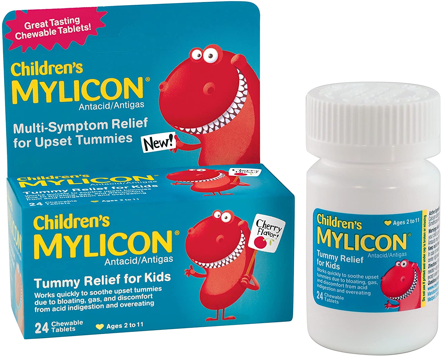 For generations, moms have trusted Mylicon for relieving their babies' gas discomfort. Now there's help for bigger kids too: NEW Children's Mylicon Tummy Relief for Kids; the only multi-symptom, chewable tablet for kids 2 - 11 that is designed to quickly soothe upset tummies due to bloating and discomfort from gas, acid indigestion, and overeating. From the maker of the #1 Pediatrician Recommended brand for infant gas relief, Children's Mylicon effectively relieves tummy discomfort from gas and acid while being safe and gentle for little bodies.