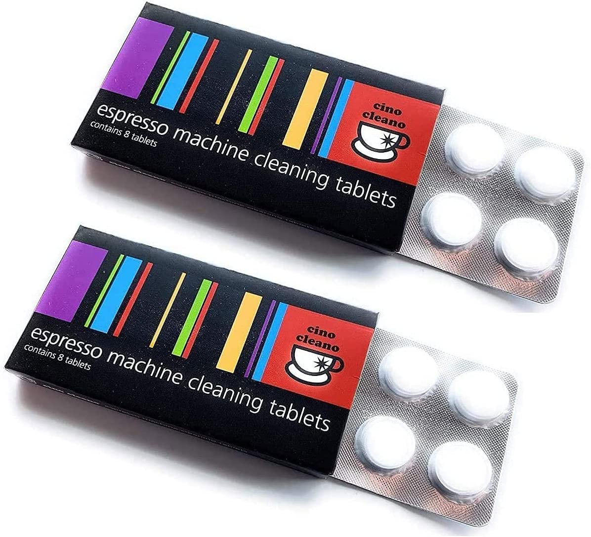To clean filters and group handles, dissolve 1-2 tablets in 500ml of hot water for 10 minutes. Rinse thoroughly in running hot water. Either insert one tablet into the special opening and follow the machine manufacturer's cleaning and maintenance instructions or place rubber blind filter into group handle and flush through machine following the machine manufacturer’s cleaning and maintenance instructions. Cino Cleano Espresso Machine Cleaning Tablets are designed to safely and completely remove coffee oils and residues from the brewing group.