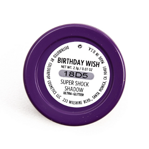 Colour Pop Birthday Wish Super Shock Shadow is a soft, muted gold with a sparkling, glittery finish. Colour Pop's famous long-wearing crème powder formula with a unique bouncy-like texture. It's super creamy, insanely pigmented, and has one swipe intensity with zero fallout.