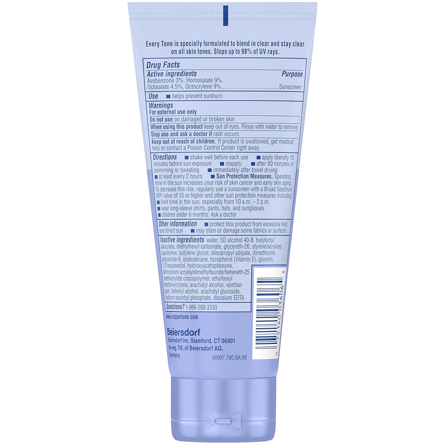 Coppertone SPF 50 sunscreen blends in clear, leaving no white residue on any skin tone. Ideal for daily use, it works as both a face and body sunscreen. Formulated with nourishing Vitamin E, it keeps skin moisturized while providing broad-spectrum UV protection, blocking up to 98% of harmful rays. This water-resistant formula lasts for 80 minutes and is free from fragrance, oxybenzone, octinoxate, PABA, and phthalates. Trusted for over 75 years, Coppertone continues to provide quality sun protection.