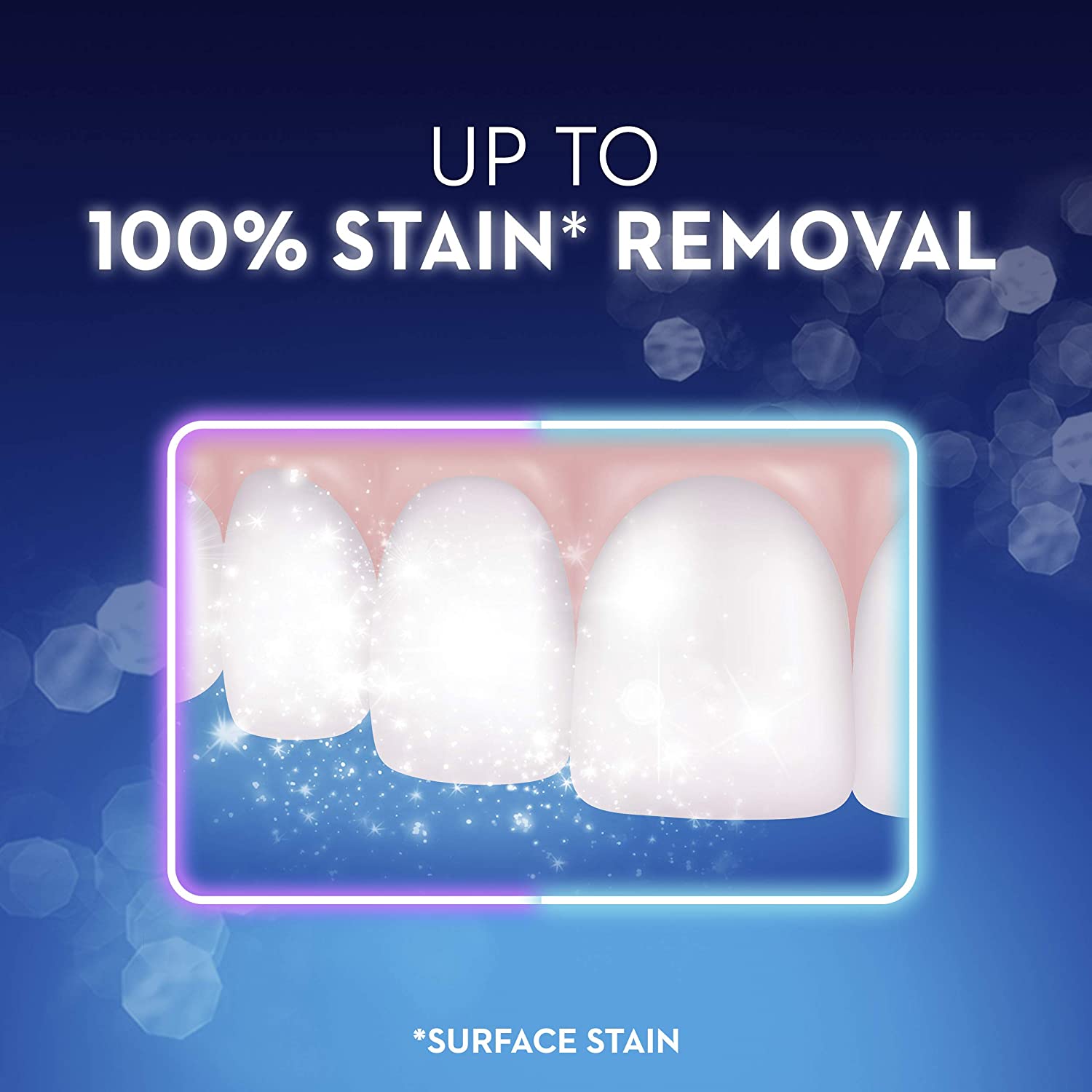 Our most advanced 3D White Toothpaste yet. Crest 3D White Brilliance toothpaste whitens teeth by removing up to 100% of stains in 5 days, with 24 hour stain protection when paired with twice daily brushing. Contains fluoride to fight against cavities. For best results, pair with a Crest 3D White toothbrush or 3D White electric toothbrush head. Among single tube 3D White toothpastes