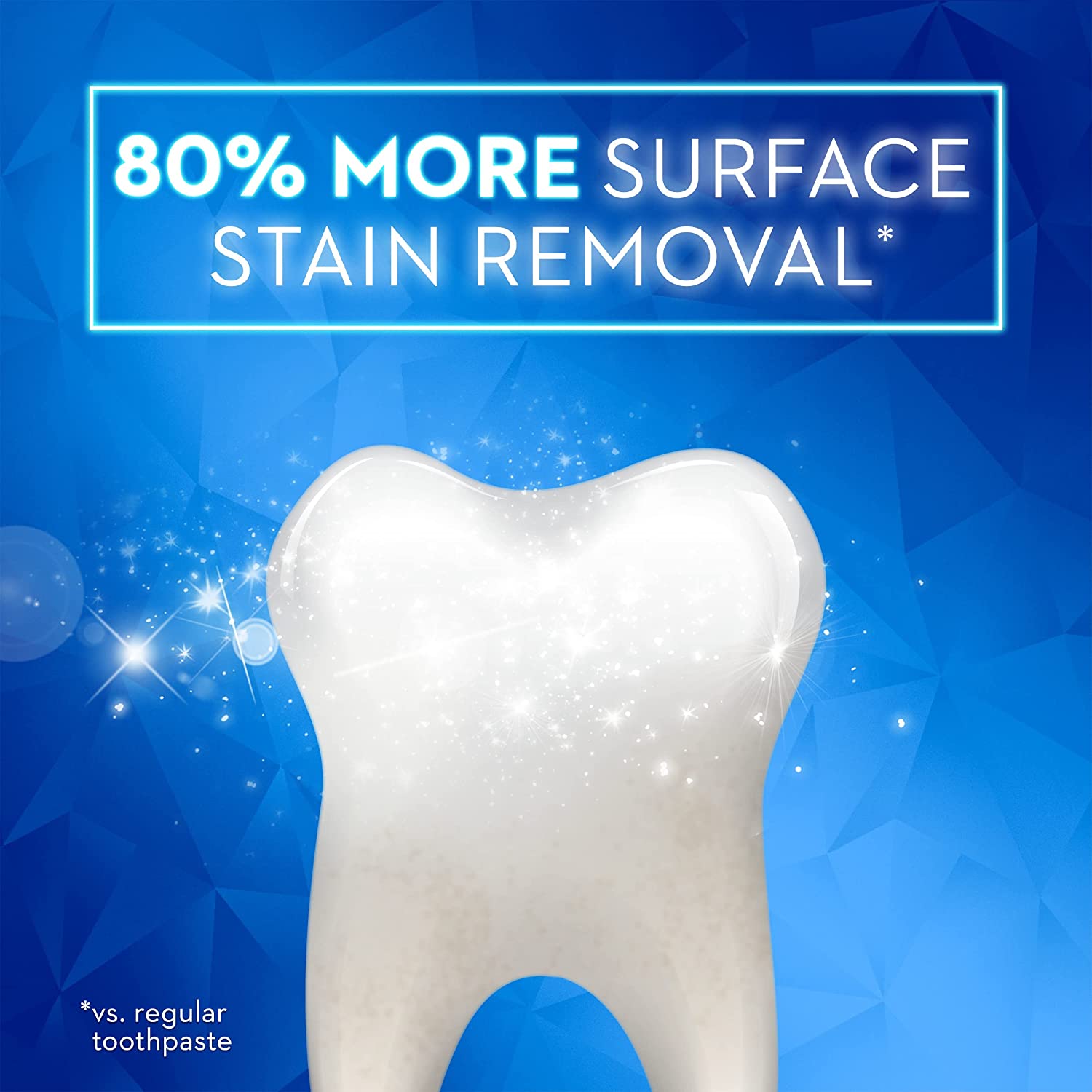 Brighten your smile with Crest 3D White Stain Eraser Toothpaste in Polishing Mint flavor. Removes 80% more surface stains* caused by Tea, Coffee, Soda, Wine and more. This formula is gentle on enamel and helps protect against cavities, while also leaving breath minty fresh. *vs. regular toothpaste