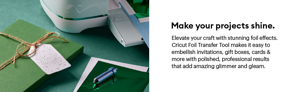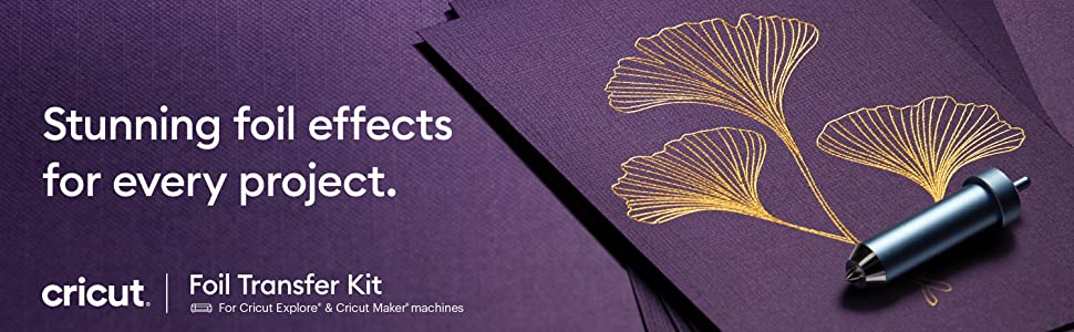 Add elegant shine to your projects – embellish invitations, gift boxes, cards & more. It's easy to get pro-level, polished results that last with this unique, pressure-activated system, including 3 interchangeable fine, medium & bold tips. Simply follow the prompts in Design Space to make like a master. When your Cricut Maker or Cricut Explore machine is done, peel to reveal the glorious glimmer & gleam. Use with Cricut Foil Transfer Sheets (12 sheets included), available in a stunning variety of colors.
