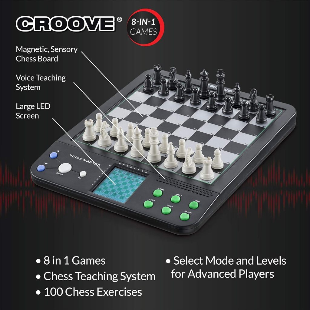 Croove Electronic Magnetic Chess and Checkers Set 10 Inch 8-in-1 Board Games Ages 8+