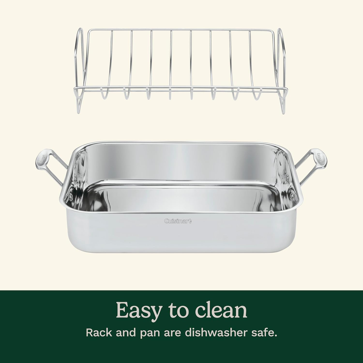 Ideal for holidays, parties, and everyday family meals, the Cuisinart 16-inch roaster fits large cuts of meat like turkey or roast with ease. Its sturdy stainless steel handles ensure safe lifting, while the included rack promotes even cooking and allows fat to drain away for healthier results.