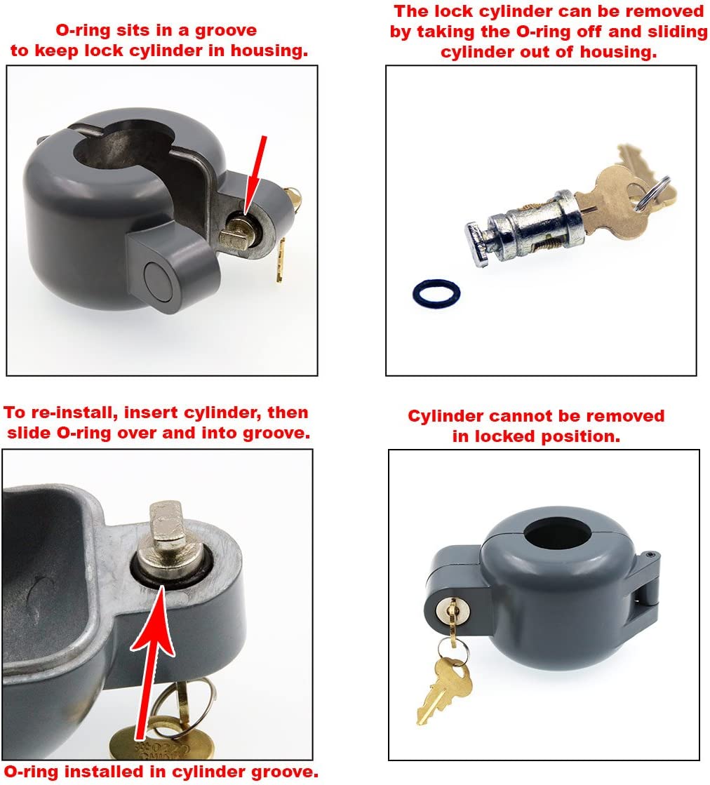 This Defender Security doorknob lock-out device is designed to be mounted directly over the doorknob to prevent access to the keyhole only, effectively preventing unauthorized access by key. The durable diecast cylinder is held in place with an O-ring and is removable when the device is unlocked and open. The cylinder cannot be removed when the device is closed and locked. This lock-out device is often used in evictions, rentals, home sales, on job sites, in-home, on in-office storage room knobs and more. It is the ideal solution for keeping others out, even if they have a key to the door. It is a quicker and easier solution over replacing the entire knob and lock system on a door while still getting the protection you need. The maximum outside diameter of a round knob that can be secured with this device is 2-7/16”.