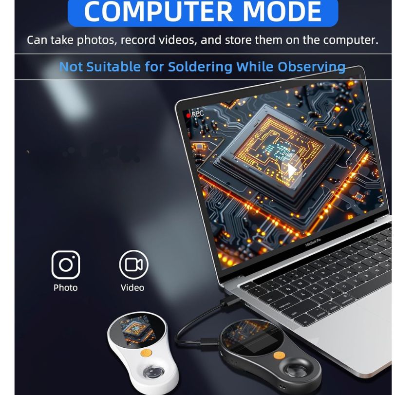 This compact digital microscope features a 2.0-inch IPS color screen for real-time viewing and photo capture (stores up to 100 images, no download). Connect to a computer via Type-C for larger screen use. Offers fixed focus with up to 500x magnification—ideal for coins, fabrics, and more (not for PCB work). Built-in 400mAh battery provides 1.5 hours of use per charge. Delivers 1080P HD clarity with 8 adjustable LED lights. Pocket-sized and portable, it's perfect for nature, home, or hobby use.