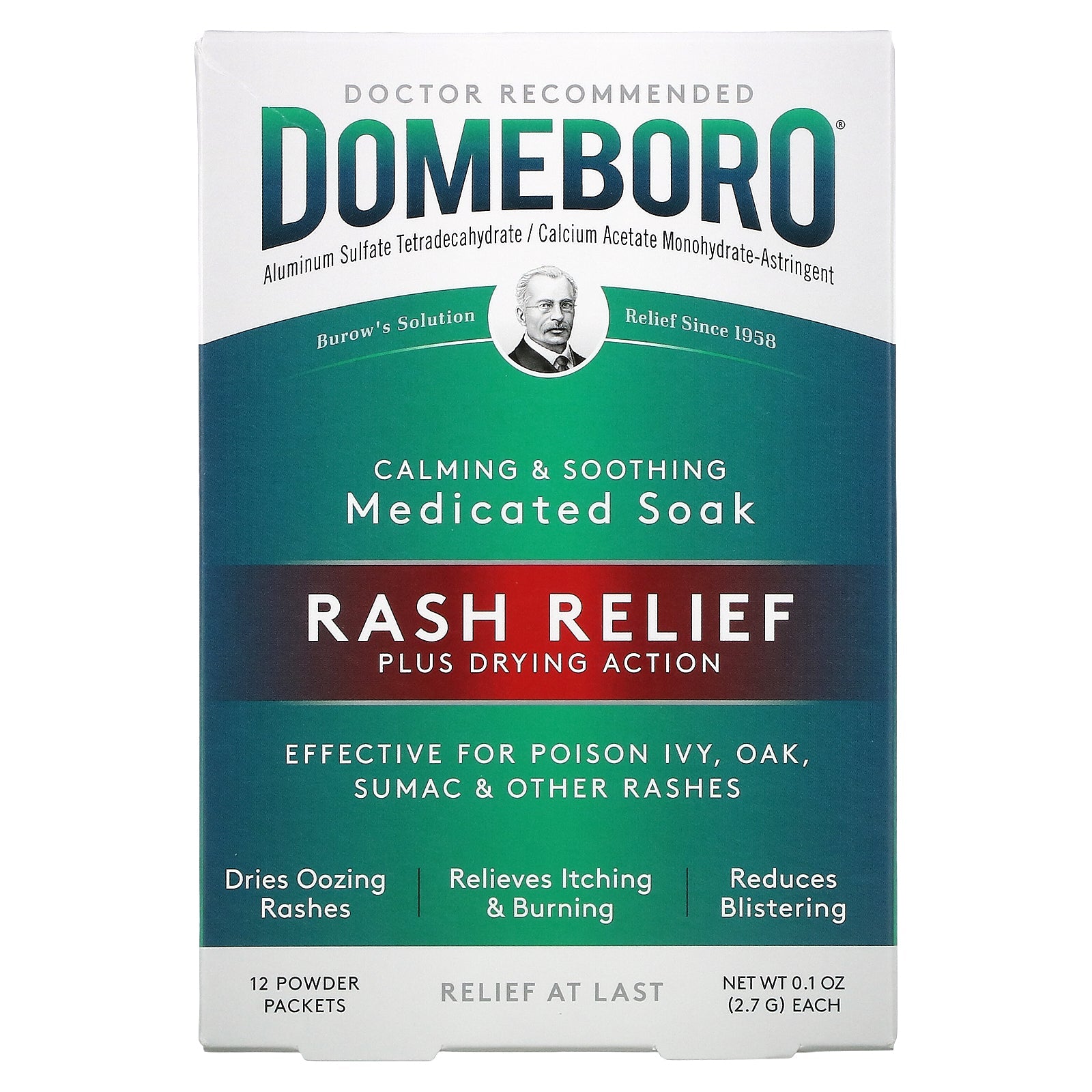 Domeboro Calming & Soothing Medicated Soak Rash Relief Plus Drying Action for Poison Ivy, Oak & Other Rashes, 12 Powder Packets (0.1 oz. / 2.7 g) Each