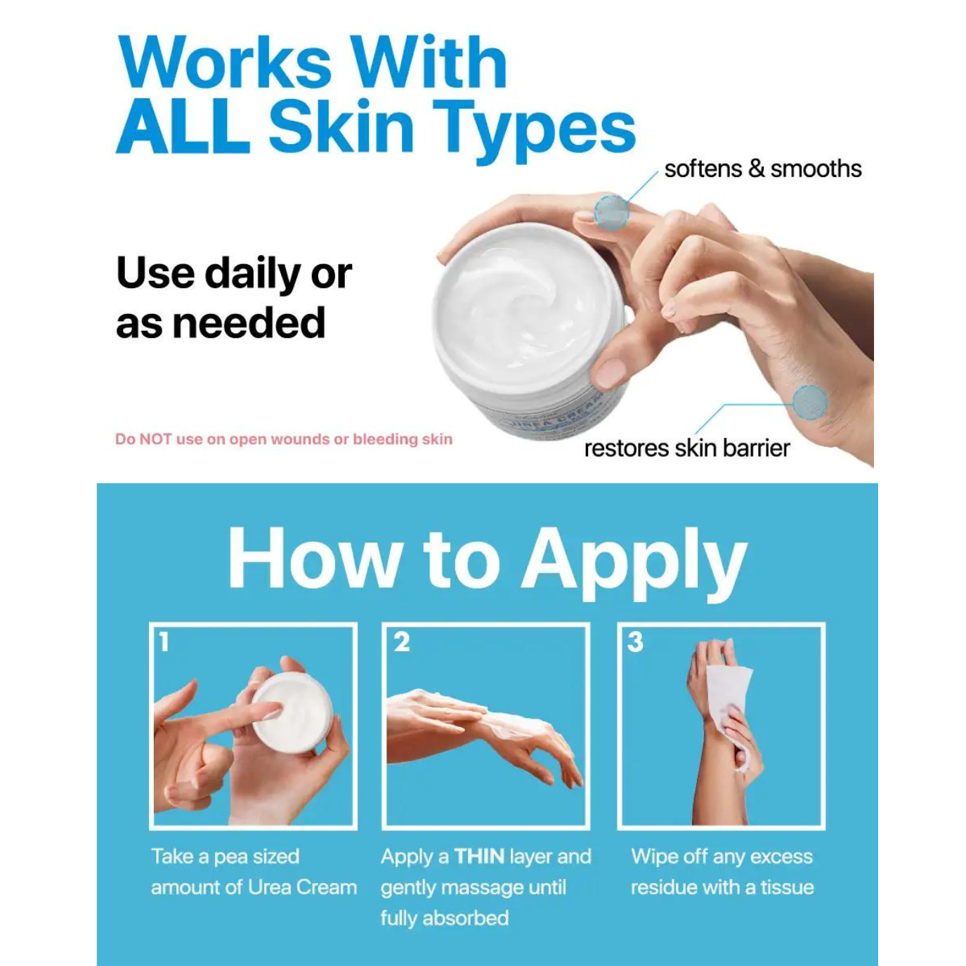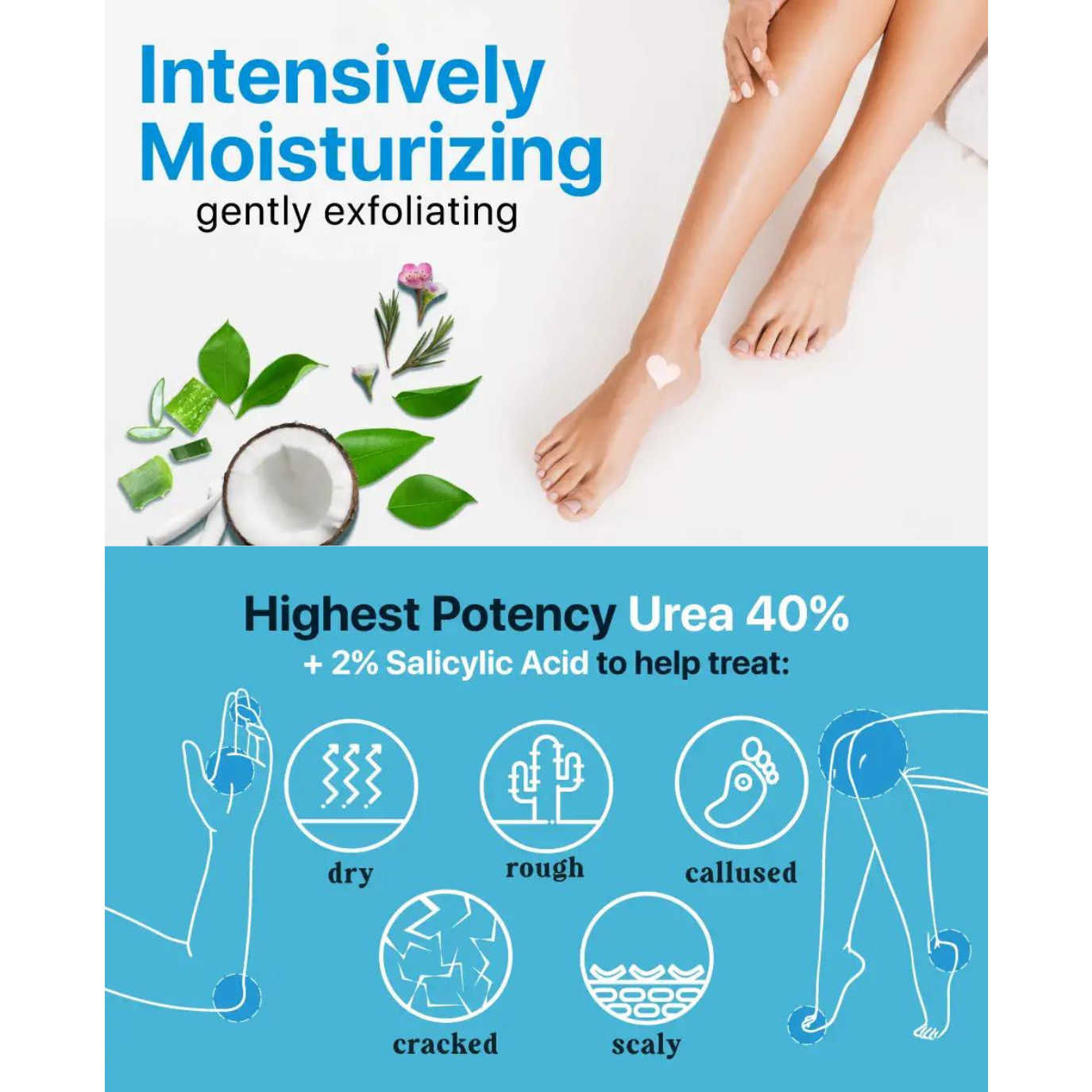 INTENSIVE MOISTURIZING CREAM FOR DRY, CRACKED, ROUGH AND BUMPY SKIN - This highest potency Urea Cream 40% for feet, hands, elbows, nails intensively and quickly moisturizes, softens and smooths thick, callused, scaling skin