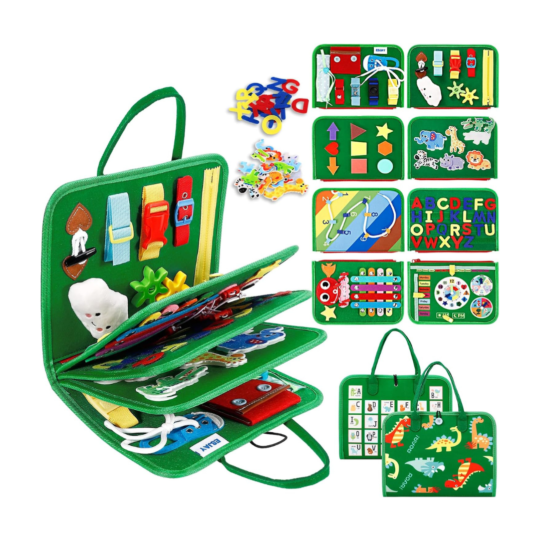 Light weight with handles design, this toddlers busy board is portable for kids to carry and play.