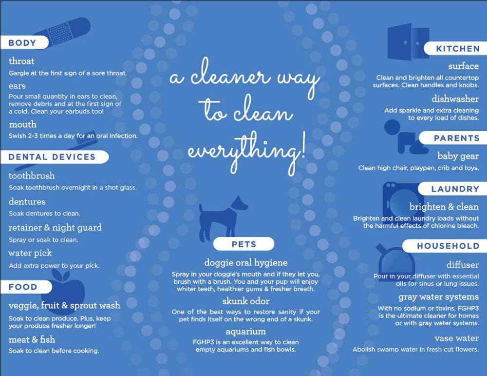 Essential Oxygen is a certified woman-owned triple bottom-line company that sees this planet and its people beaming with optimal health and promotes this vision by creating truly effective and clean natural products. Essential Oxygen 3% Food Grade Hydrogen Peroxide is THE essential product for every household because it powerfully cleans without imparting any toxic residue. With none of the toxic stabilizers found in non-food grade, brown bottle varieties, FGHP3 is the cleaner way to clean…everything from 1st aid to body to household to food to pets and even plants.