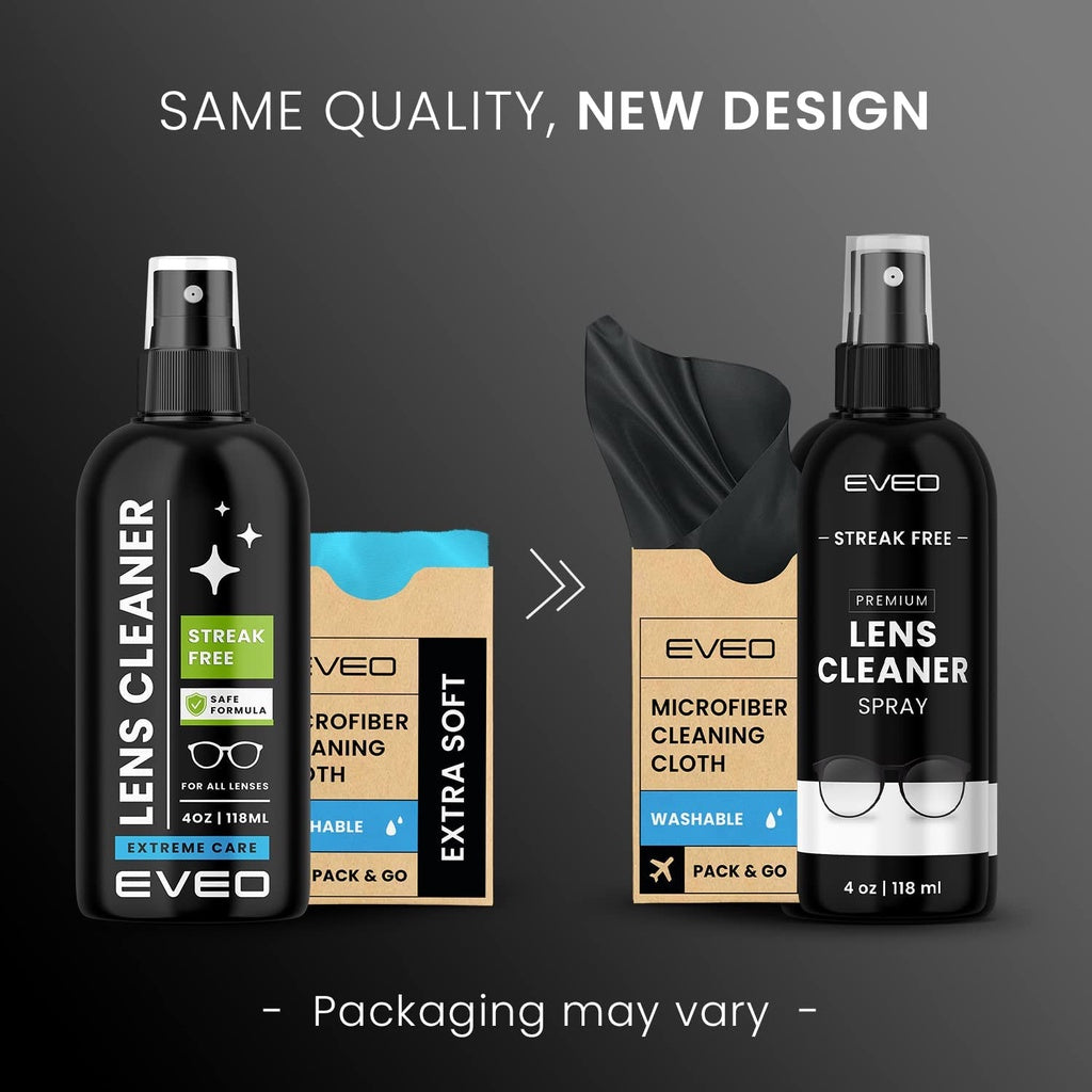 Eveo Lens Cleaner Streak Free 2 Sets of 4 Oz (118ml) Bottles and Microfiber Cloth