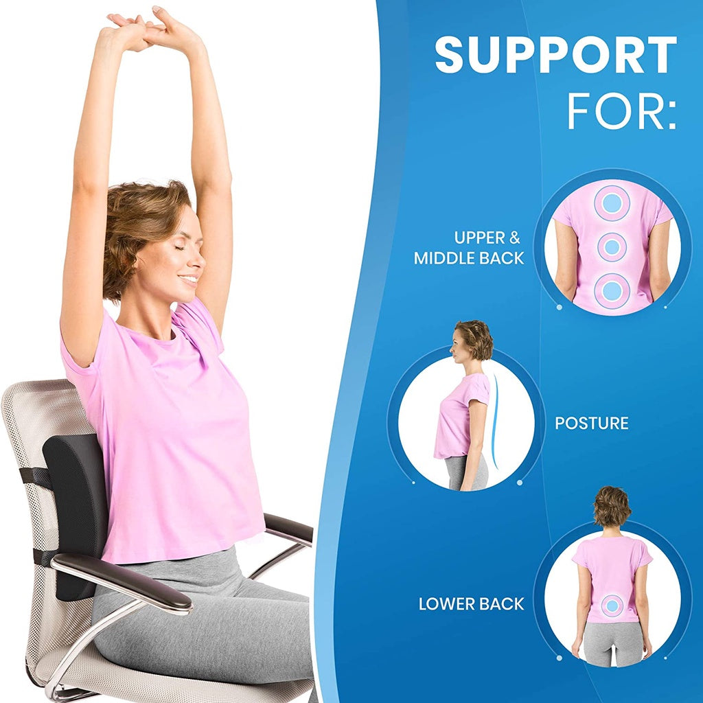 - Improve Your Work Productivity with Our Chair Cushion for Back Pain: Most chairs lack proper back support, causing discomfort. Our chair back support relieves pressure and pain in the upper, middle, and lower back so you can better focus on the task at hand