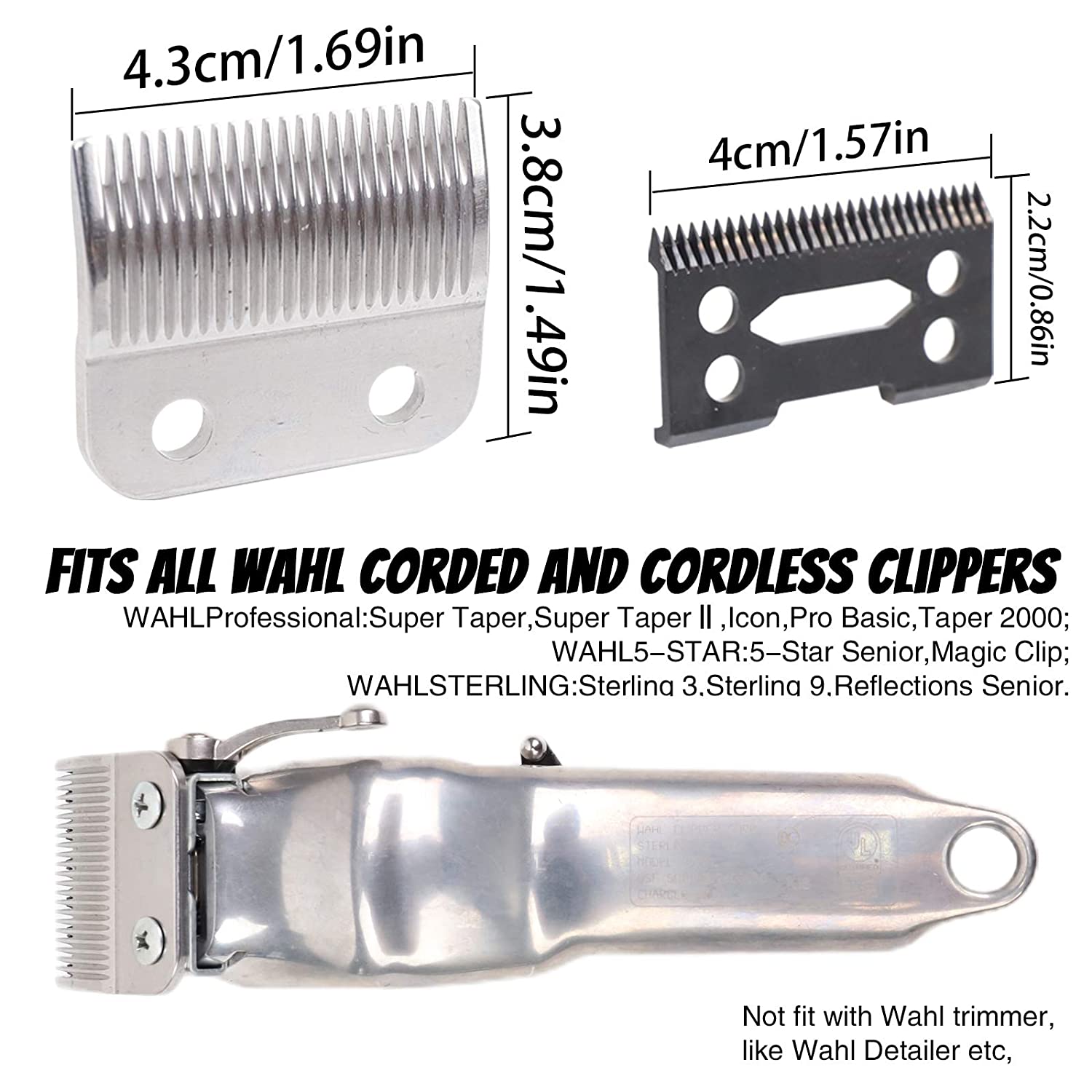 Advanced Ceramic BladeCompatible Device Examples:Fits all Wahl Corded and Cordless Clippers Including:WAHL Professional: Taper. Icon, Pro Basic, and Taper 2000WAHL 5-Star: 5 Star Senior, Magic Clip Corded and cordless.Reflections Senior.Benefits:Advanced ceramic technology makes our ceramic blade 5X sharperLasts 5X longerStays 5X coolerLONG LASTING:Made from a high-tech ceramic material to stay sharper longer. Heat resistant for a cooler and more comfortable cutting. Rockwell Hardness rating of 78.EASY INSTALLATION:This replaces the small moving cutter blade.Can also be used to upgrade steel blades to ceramic blades.Simply replace the steel cutter of a steel blade with a ceramic cutter. Save Money For you.