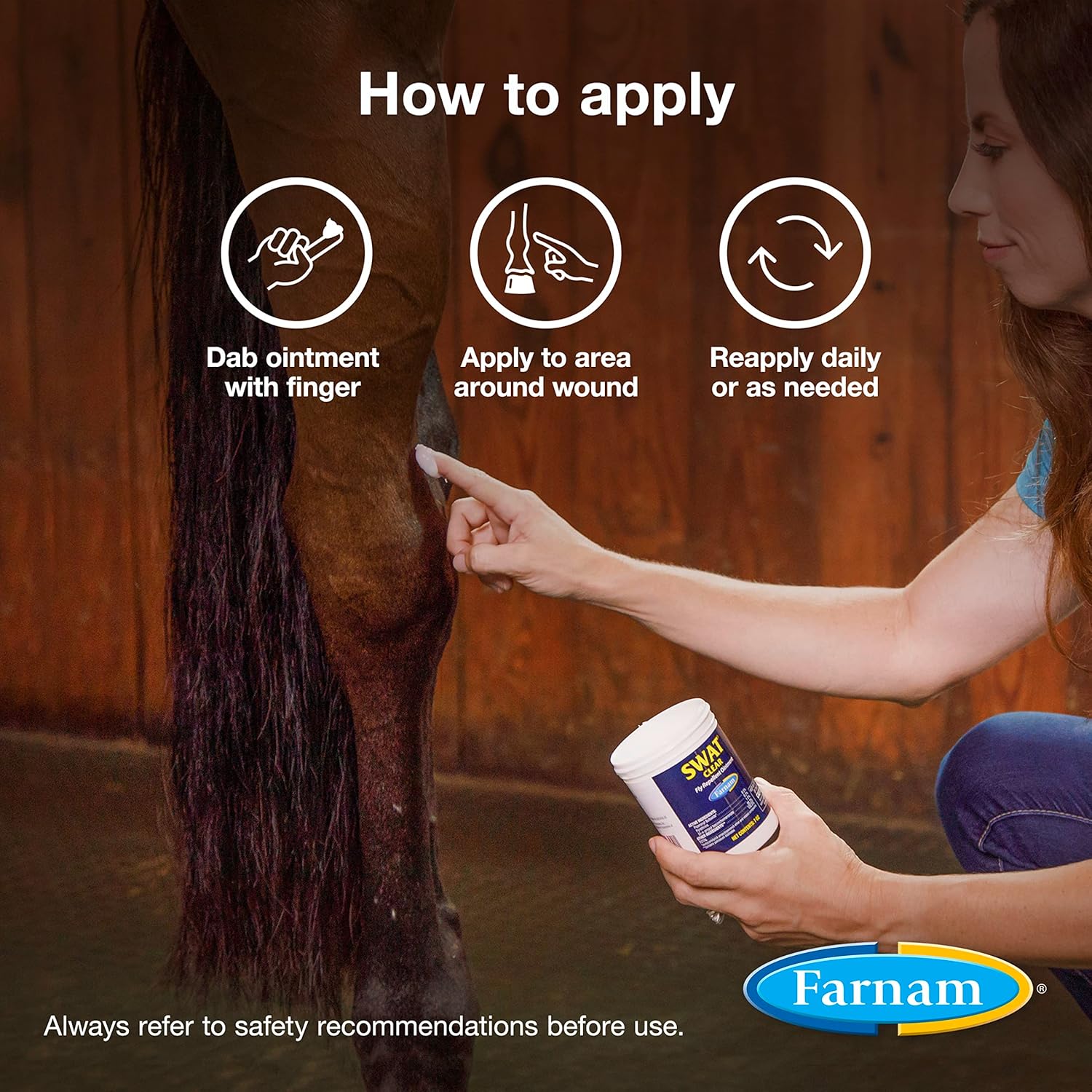 Protect your horses, ponies, and dogs from biting and nuisance flies with SWAT Fly Repellent Ointment. This easy-to-apply ointment repels house, stable, face, and horn flies while providing targeted protection for wounds and sensitive areas. It comes in a convenient 7 oz jar, perfect for on-the-go use. Choose between the original pink formula, which highlights wounds, or the clear formula for discreet protection—ideal for show pens or when you want fly defense to stay hidden.