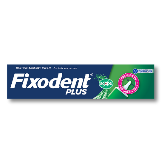 Fixodent gives you denture care confidence. If you're one of the 33 million people of all ages and walks of life who have dentures, Fixodent can help you to face each day with confidence. The #1 dentist recommended denture adhesive brand. Fixodent provides strong long-lasting hold & helps dentures fit more comfortably. It's great for both full plate and partial dentures. Fixodent Plus Scope Precision Hold & Seal kills bad breath germs and provides a superior hold.