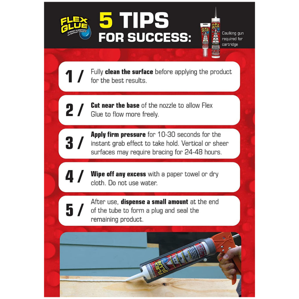 ● FLEX GLUE’s amazing INSTANT GRAB holds objects in place and in most cases, eliminates the need for braces.