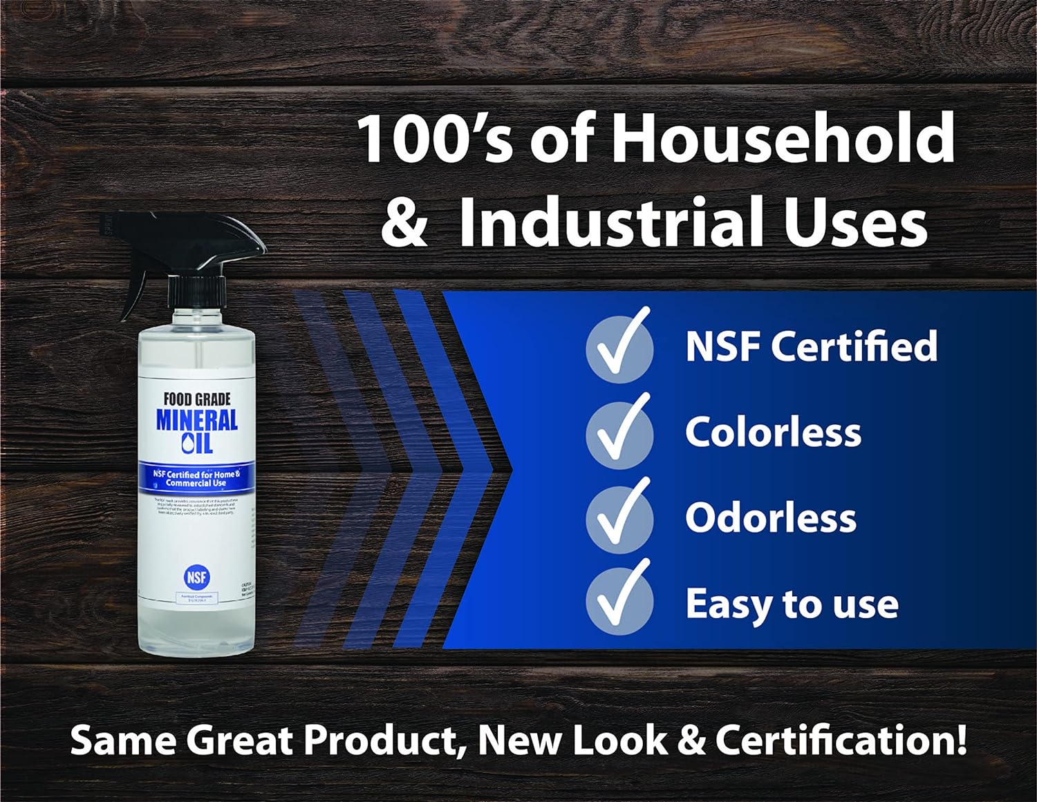 - One pint spray bottle of 100% food grade mineral oil USP certified and NSF approved (certificate available upon request)