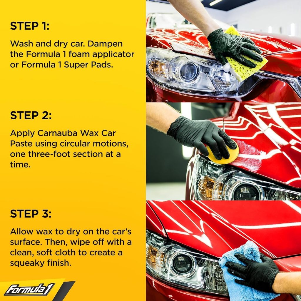● The Superior Shine of Carnauba Wax: Formula 1 Carnauba Wax Car Paste contains pure carnauba, the world’s hardest wax. This natural polishing compound gives your car a glossy brand-new finish and water-beading protection that lasts